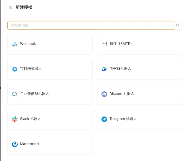 - 通知渠道:用于推送消息通知的应用。这里选了飞书(飞书的配置,实打实讲是非常方便的)