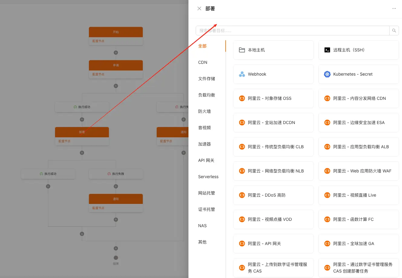 - 最后按照前一步任务是否成功,会走到不同的分支中。如果成功,那整个流程就走完结束了;如果失败会走到另外一个通知节点上,通知用户部署失败。