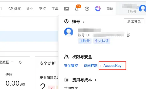 AccessKeyId 和 AccessKeySecret 可以在阿里云控制台上进行获取,具体步骤为: