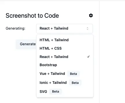 - screen-to-code 会提供四个 Option,用户可以在其中对比找出一个还原度最高的;