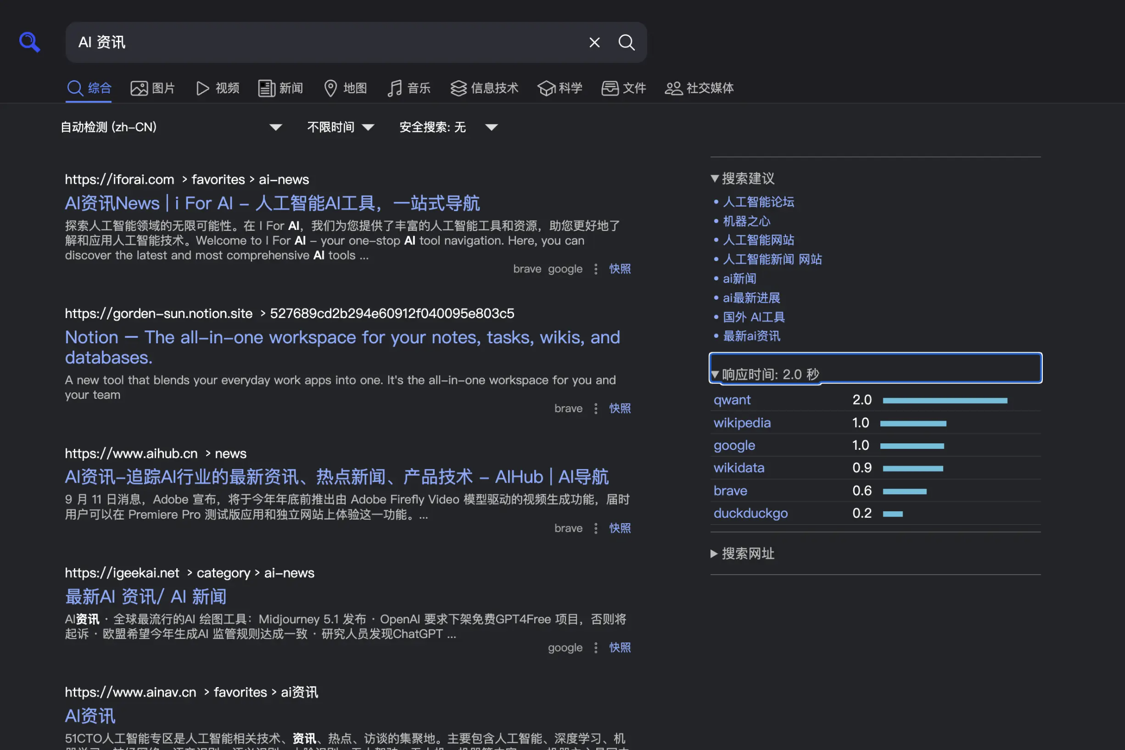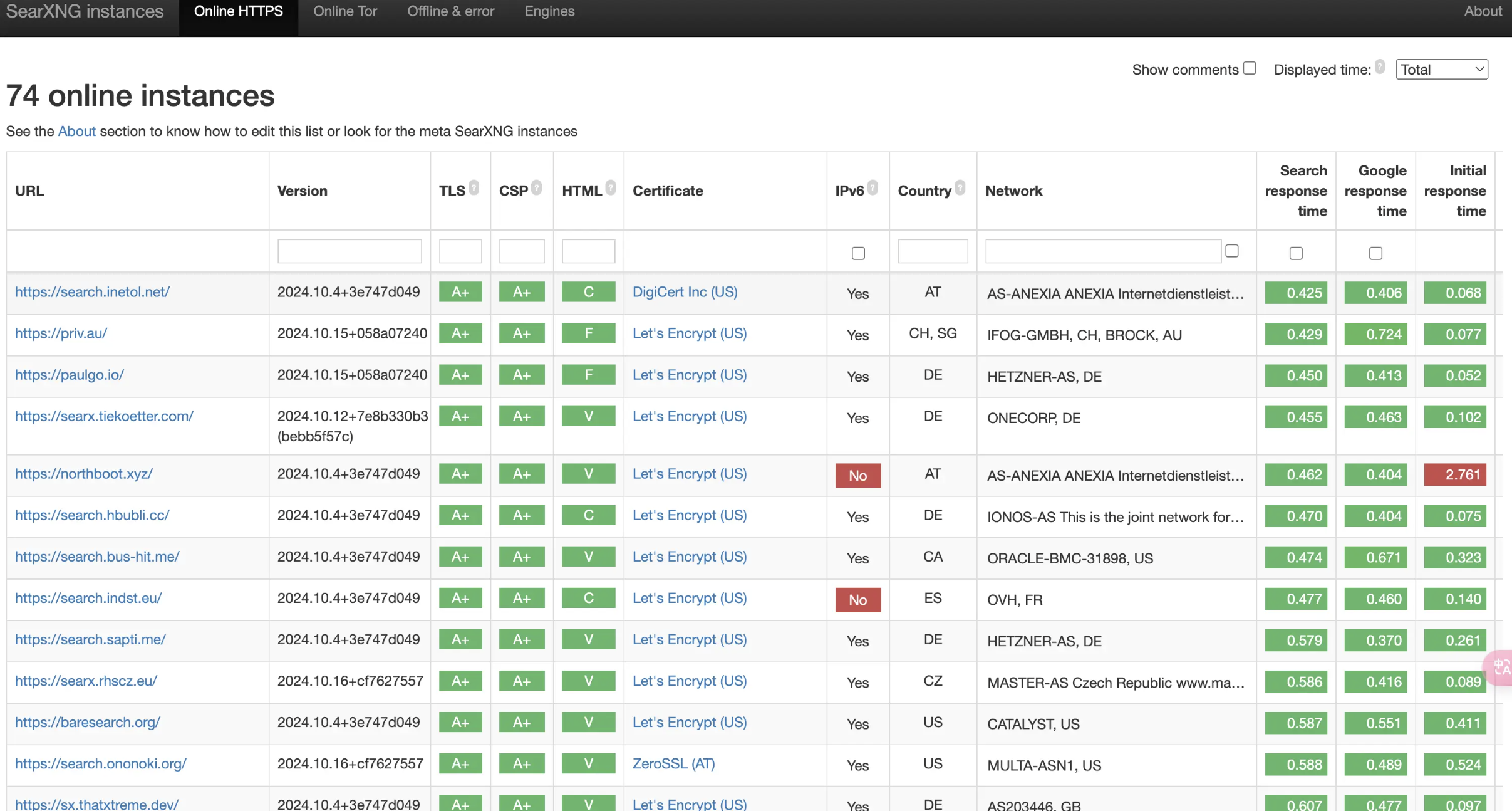 这里再推荐一下他们官方提供的 demo,里面都是一些已经部署好的 SearXNG,可以直接使用:官方 demo