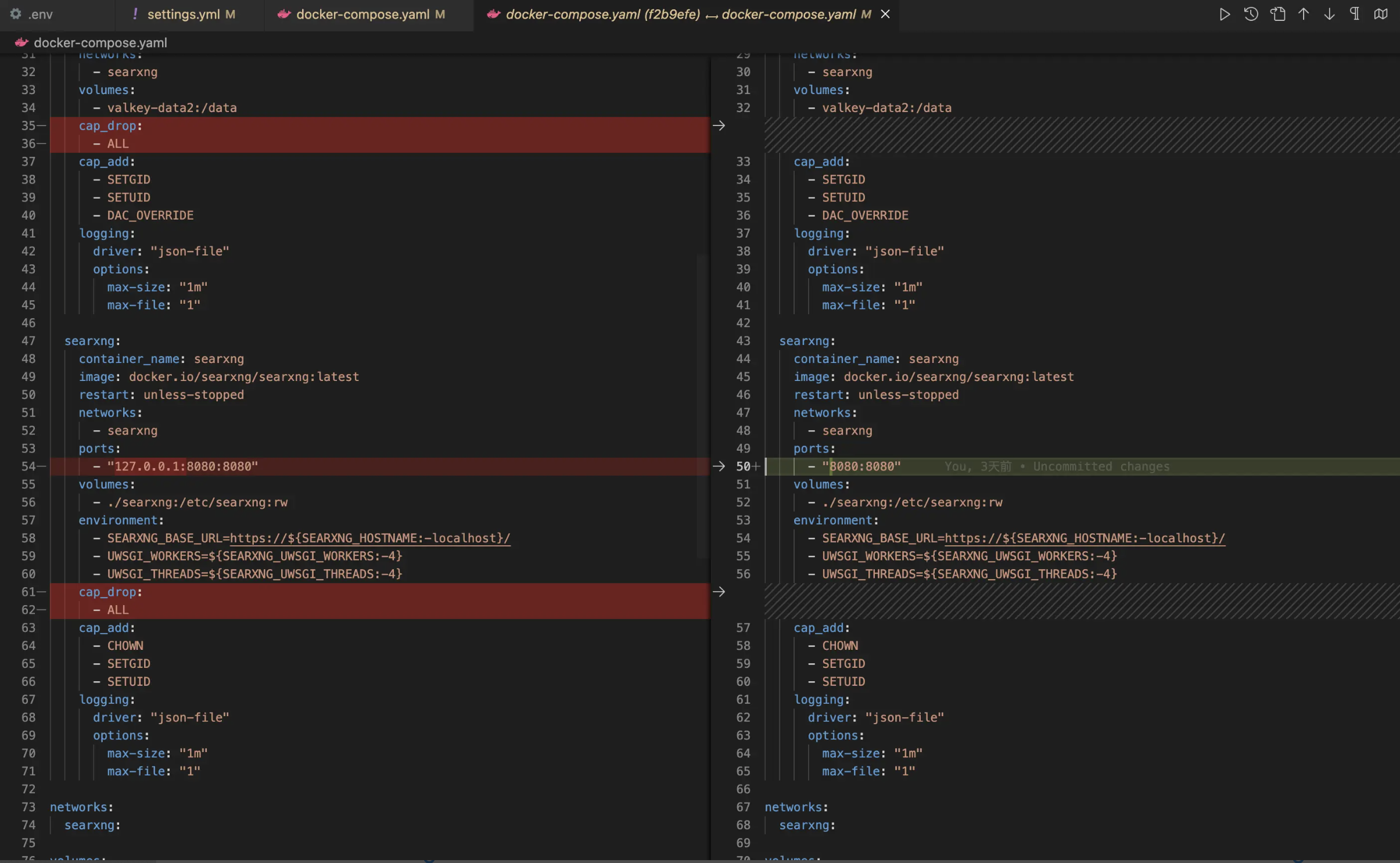 文件所需的功能。首次运行后,出于安全考虑,应将cap_drop: - ALL