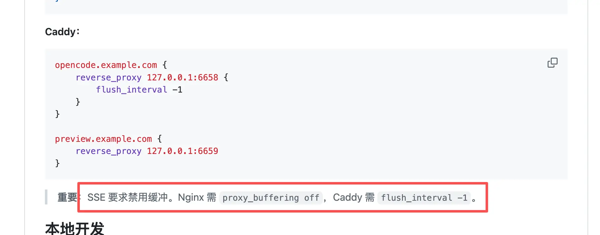 排查了一下发现是 Nginx 反向代理把 SSE 缓冲了。其实在项目的 README 里有提示,但是没细看给漏掉了: