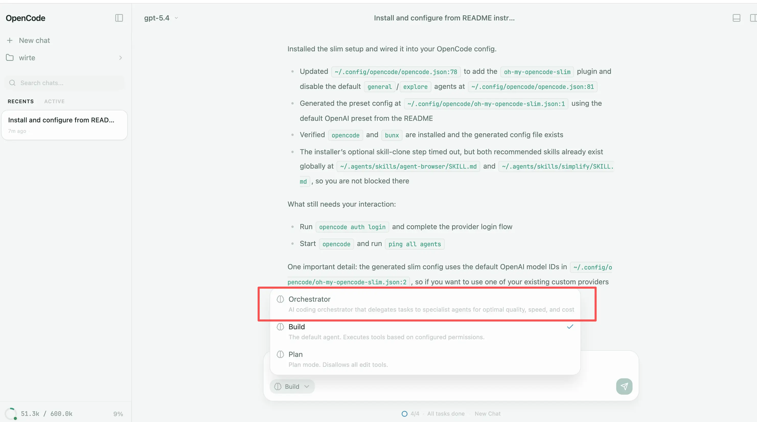 这里有个问题,我安装 omo 之后,容易卡住。可能是因为 omo 太重了,先从插件中去掉了。