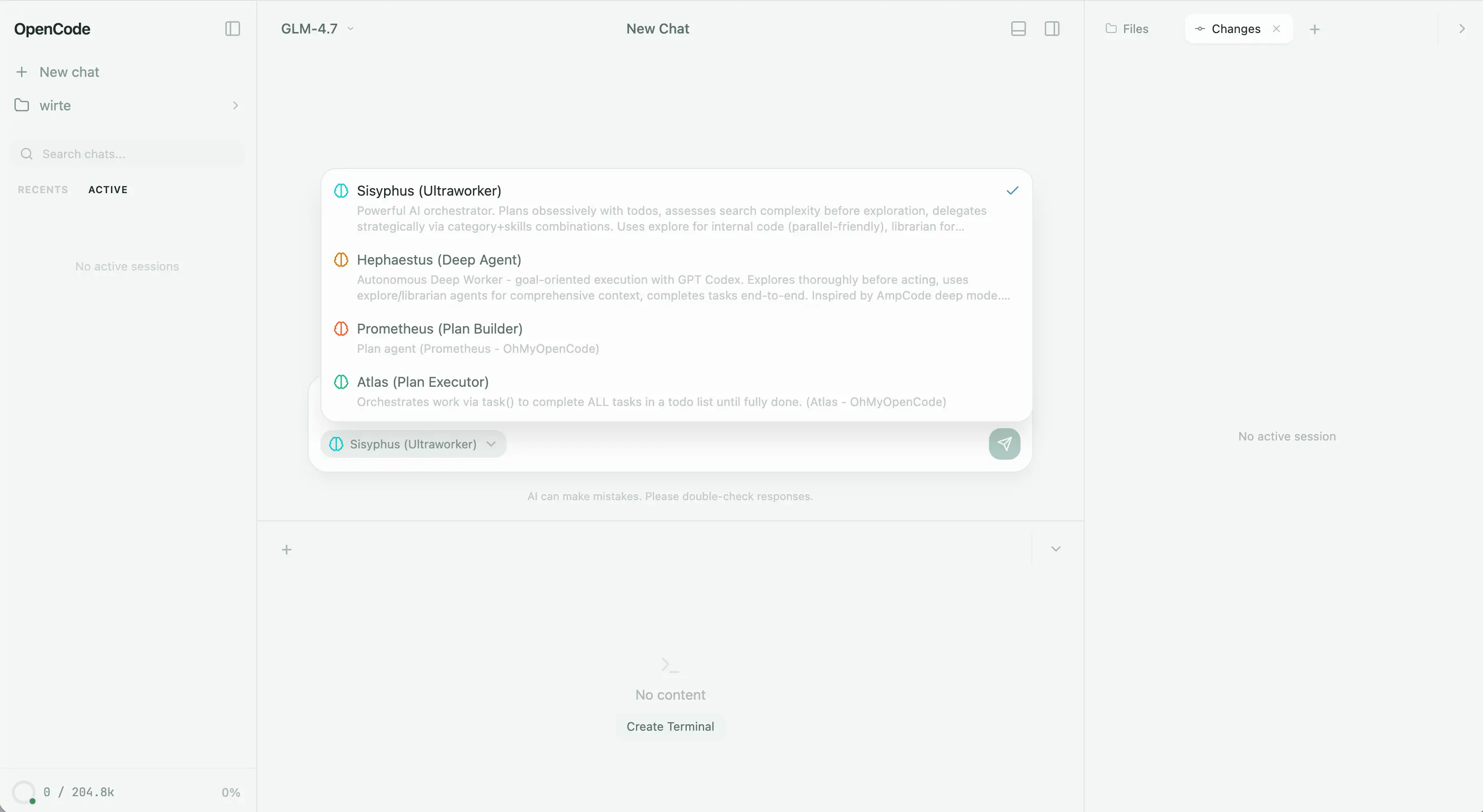 - 中间是主区域,也支持展示 OMO。还可以创建 terminal,非常 nice~