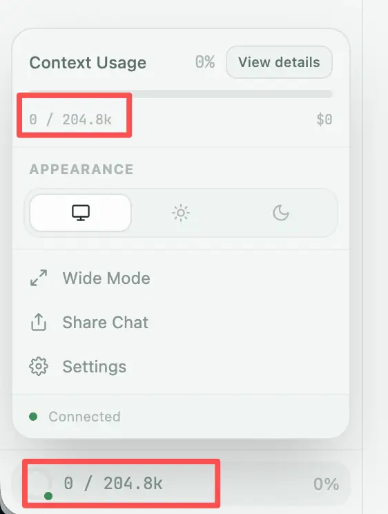 这里我接入的是第三方的 API,没有设置上下文,所以看到的是 0,改成智普的套餐后就正常了。