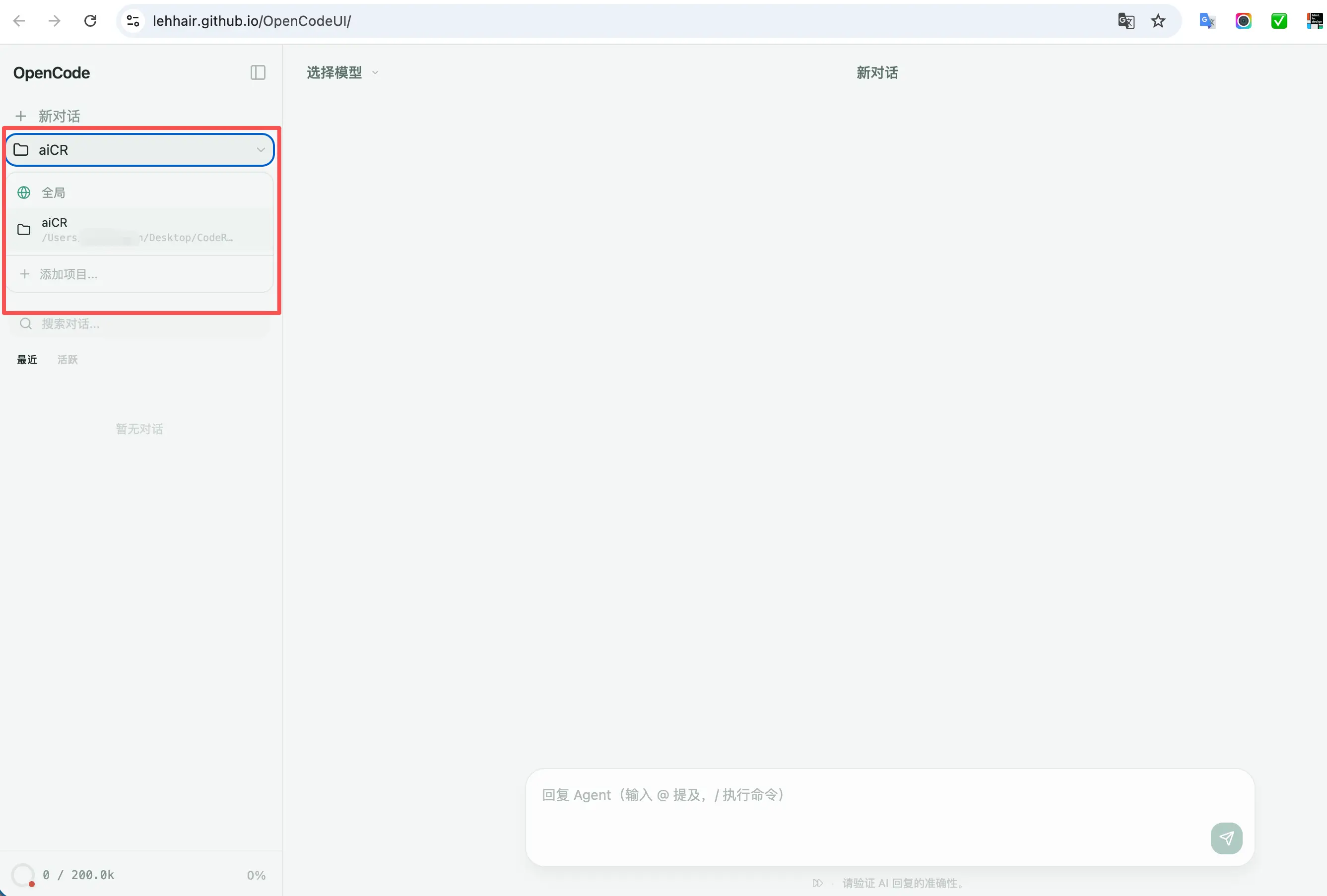 然后打开:https://lehhair.github.io/OpenCodeUI/ 即可